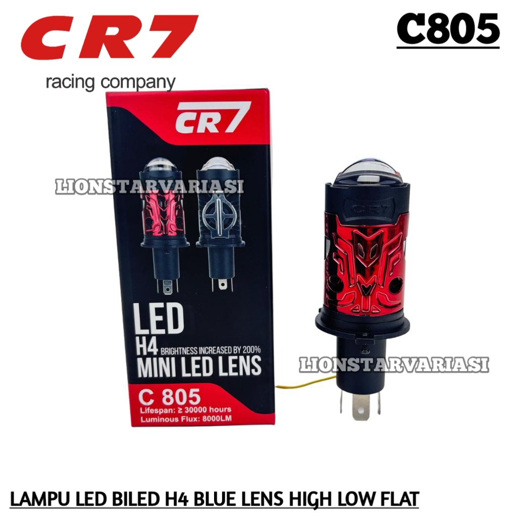 TERLARIS CR7 C805 - Lampu Utama LED H4 Biled Projector Blue Lens Plus Devil Kipas Motor Mobil Dual Laser Lens