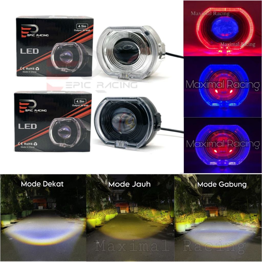TERLARIS Biled Ala ala 4.5inc Projie Biled Cahaya Laser Cut Off Jauh Dekat 30watt Plus Devil Merah Full Alumunium Waterp
