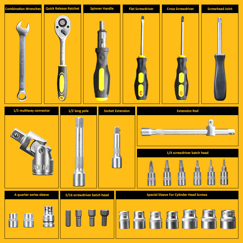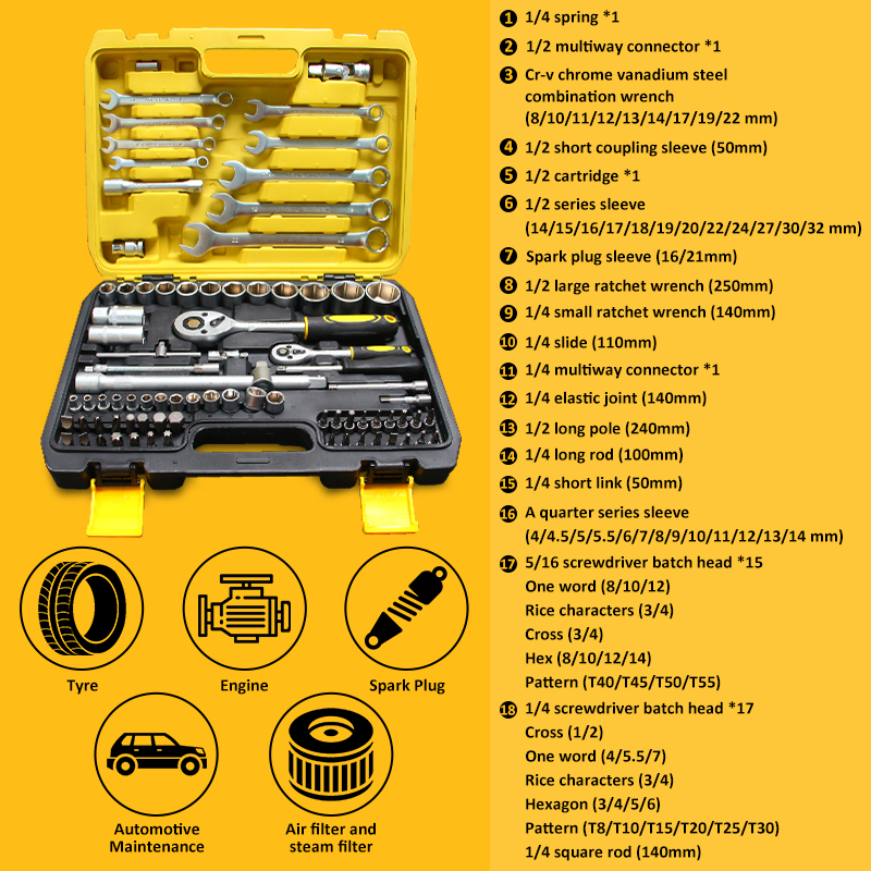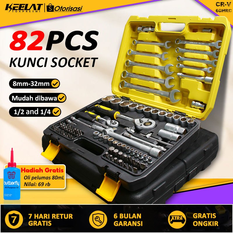 KEELAT 82Pcs Kunci Sok Set【60HRC】 Socket Full Lengkap Socket Tool Kit Pas Ring Motor Kunci Socket Wrench Pas Sok Shock