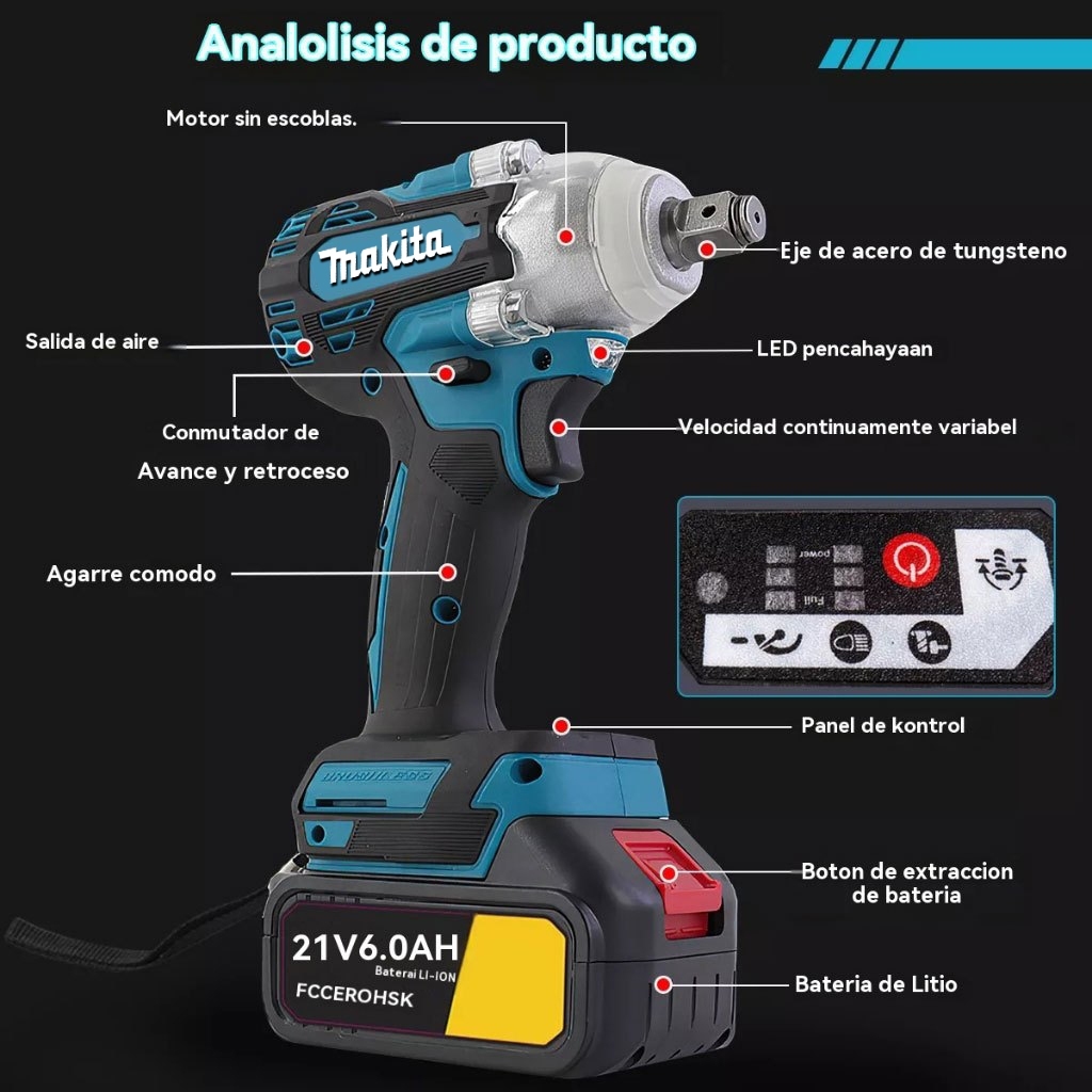 MAKlTA Impact Wrench 1599V Impact Baterai Brushless 800N.M Electric Impact Wrench Led Lampu Dengan 2 Baterai