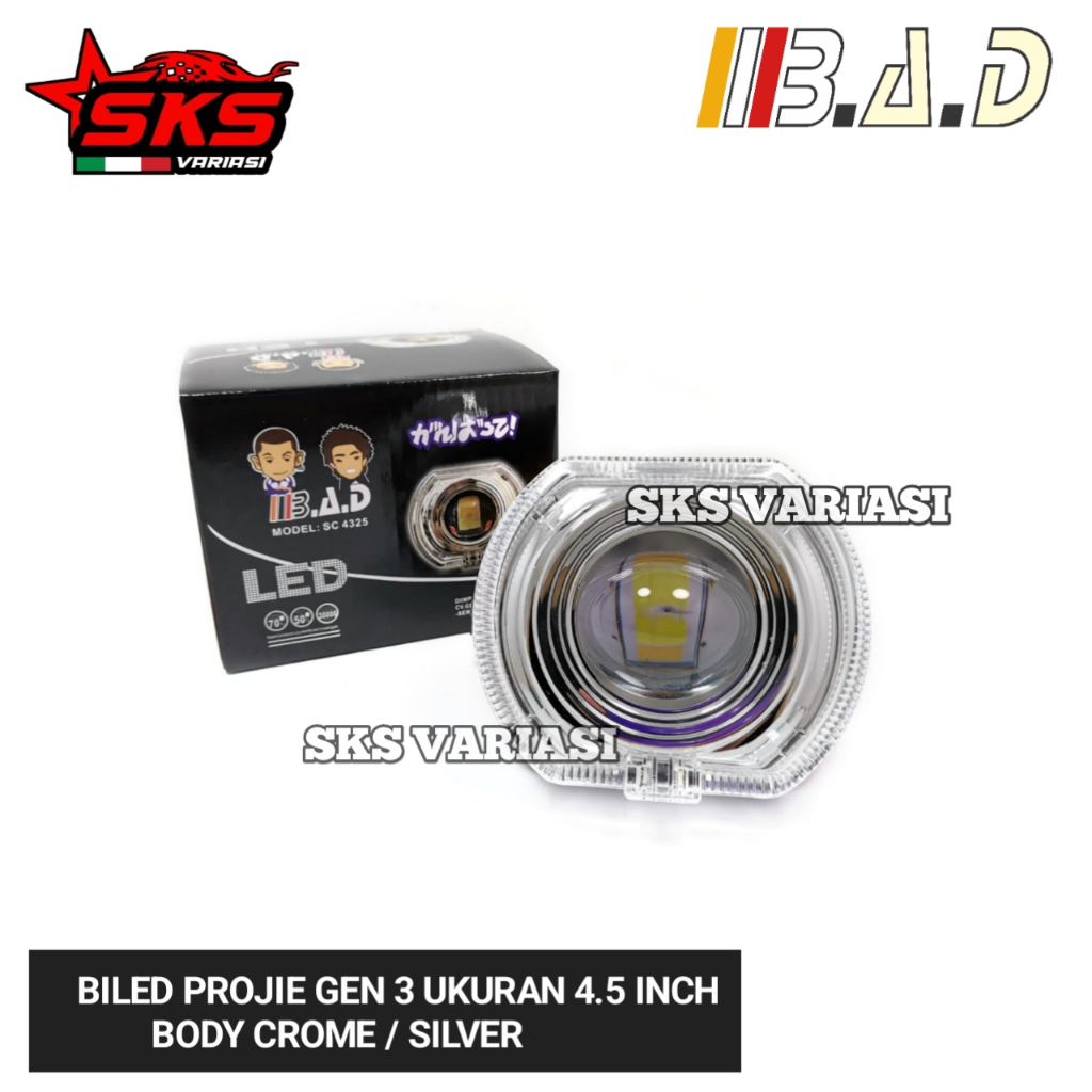 TERLARIS Projie Biled Cut Off 4.5 Inch Body Crome Silver Lampu Depan Biled Projector LED High Low Universal