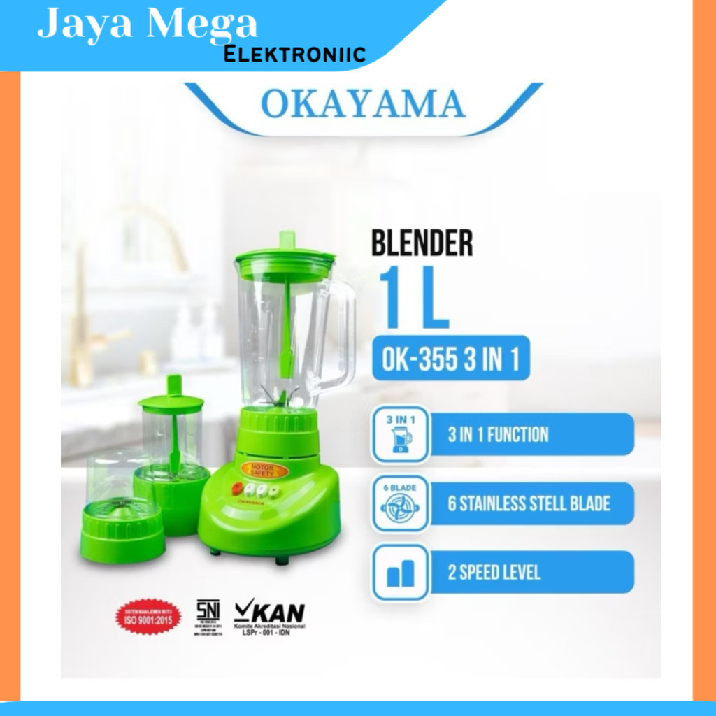 BLENDER SET OKAYAMA 1 LITER BLENDER 3IN1 PLASTIK HIJAU SNI OK-355