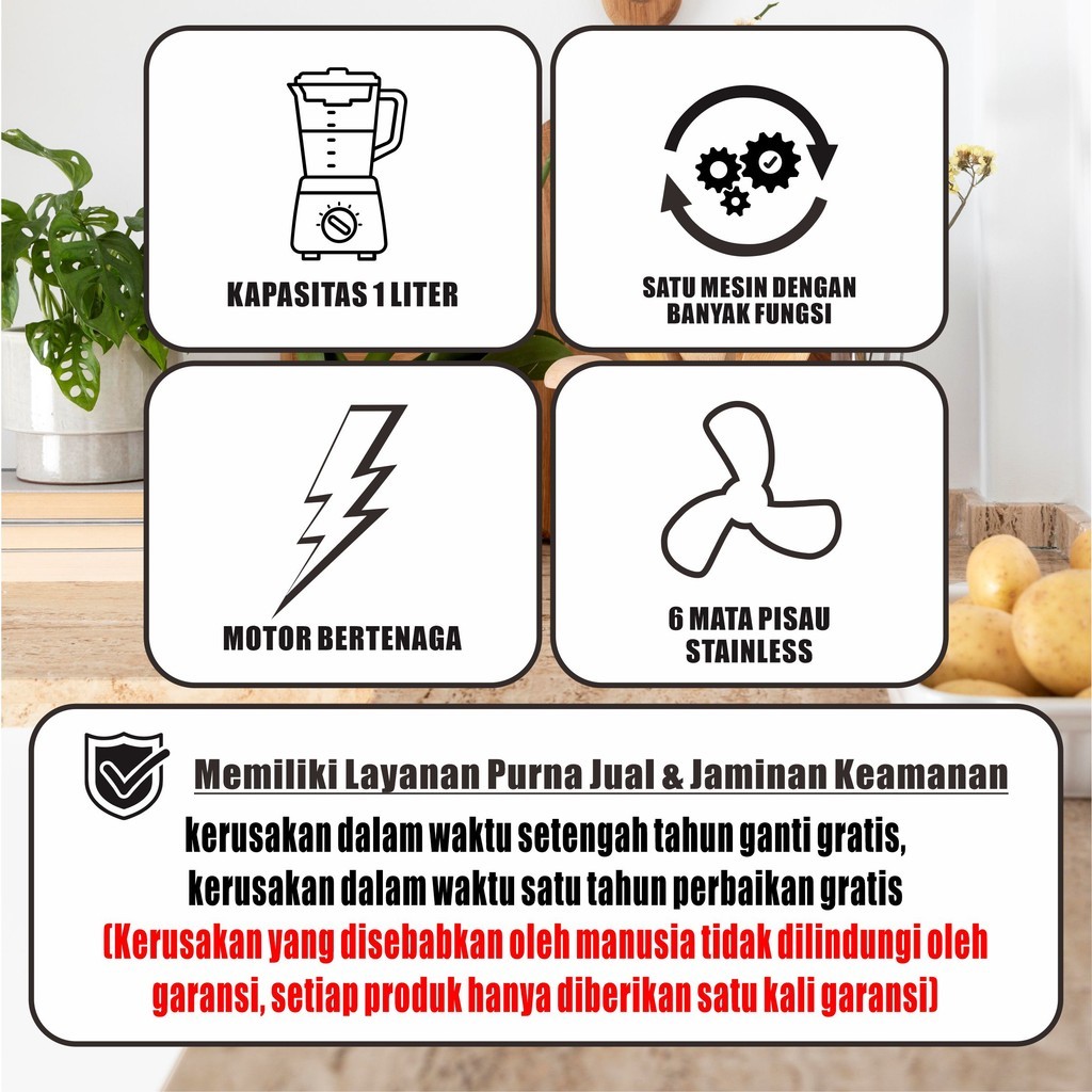 BLENDER SET JUICER PLASTIK 3IN1 1.2 LITER NATIONAL QUALITY YASAKA MULTIFUNGSI
