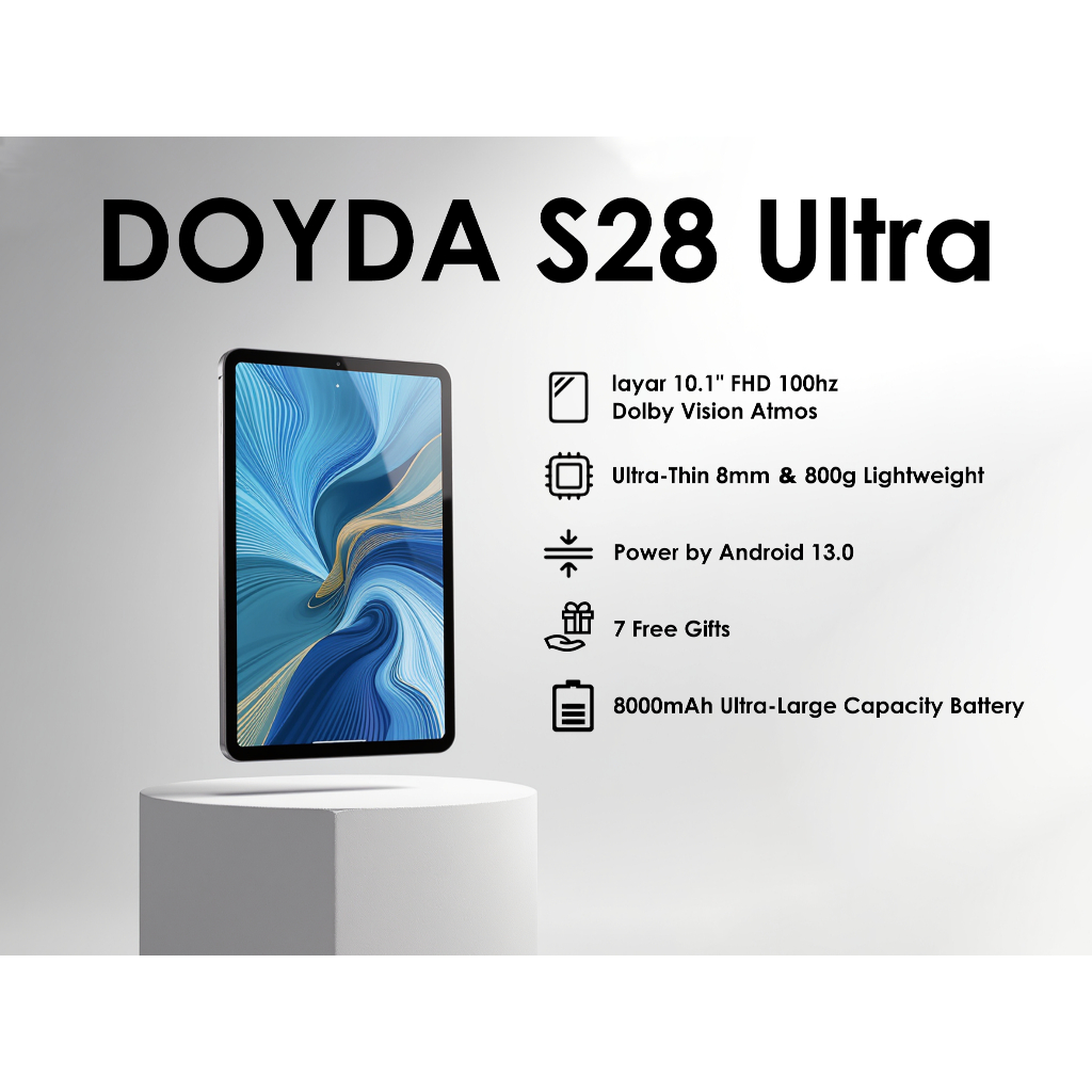 DOYDA Tablet Android (16GB/1024GB) S28 Ultra Tablet 10 inch Dual Sim Baru Andorid13 Baterai 8000 mAh