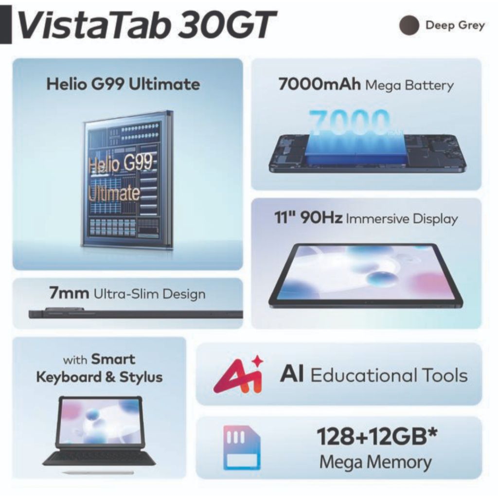 ITEL VISTA TAB 30 GT RAM 6GB (6+6GB) MEMORY 128GB 11" Inc GARANSI RESMI ITEL 1 TAHUN - HELLIO G99