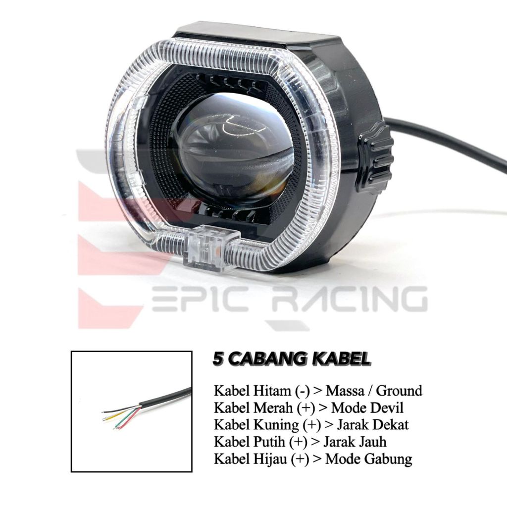 TERLARIS Lampu Projie Biled Cahaya Laser Cut Off 3,5 Inc Premium PlusShroud Devil Jauh Dekat Biled Ala Ala 3,5inch