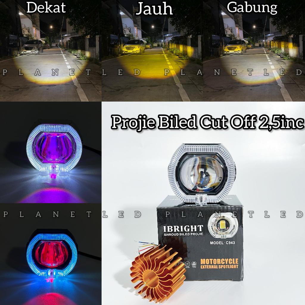 TERLARIS IBRIGHT - Lampu projie C943 Mini Biled 2,5 inc Dengan Shroud + Devil Tembak Laser Cut Off 30W High Low