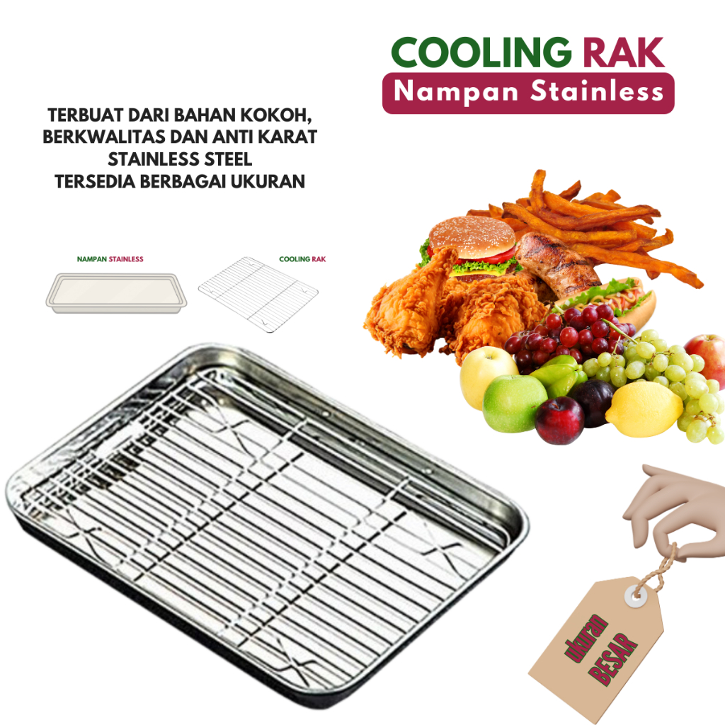 COOLING RAK DAN WADAH MINYAK STAINLESS PENIRIS MAKANAN / RACK PENDINGIN KUE / PENIRIS MINYAK SERBA GUNA