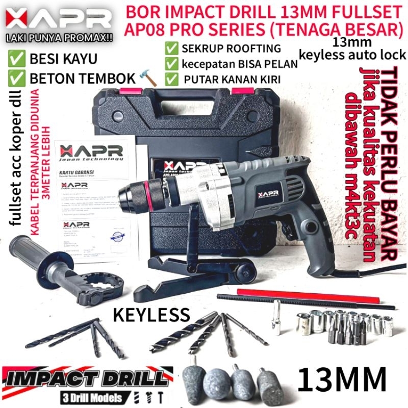 PROMO TERBARU Raja bor impact drill 13mm APR ap08 pro series beton besi kayu sekrup drilling kualitas maktec