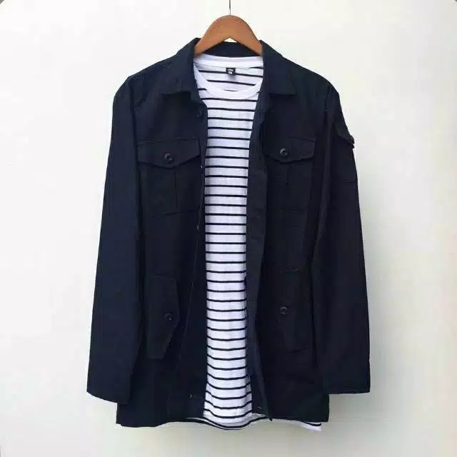 Jaket Trucker Semi Parka Pria Kancing Hitam Canvas Man Best Seller