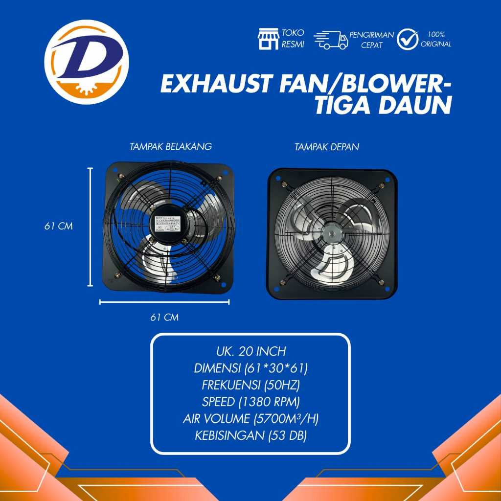 Exhaust Fan Dinding Tiga Daun 20 Inch Tembok