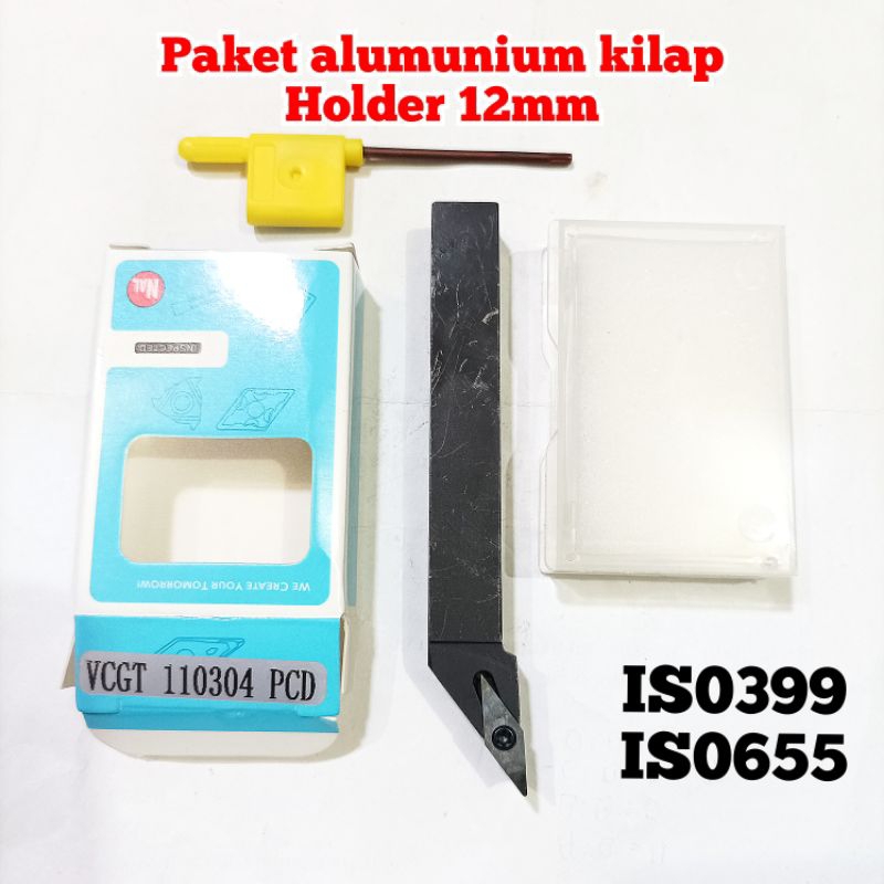 paket alumunium kilap holder 12mm SVJBR 1212H11 paket bubut alumunium kinclong set insert diamond PCD VCGT110304