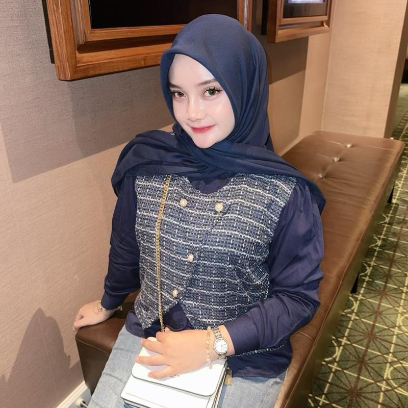 MELLA BLOUSE SEMI VEST KNIT KOREAN STYLE KATUN KEMEJA POLOS + VEST KNIT KOTAK KOTAK TREND FASHION BAJU WANITA KEKINIAN