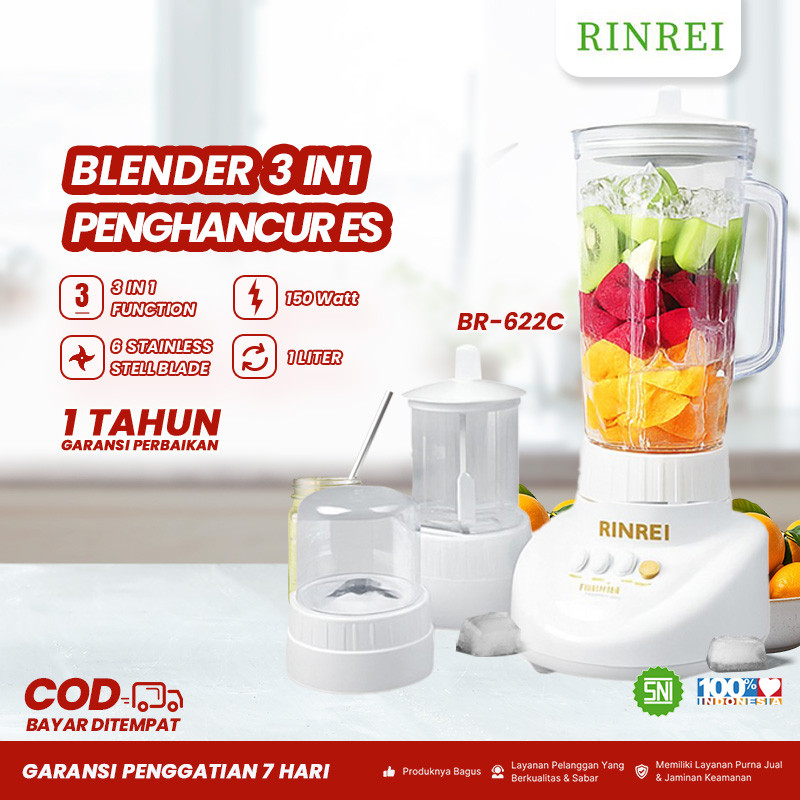 BLENDER SET RINREI BR622C 1 LITER PEMBUAT JUS 3IN1 WADAH PLASTIK WARNA PUTIH BERGARANSI