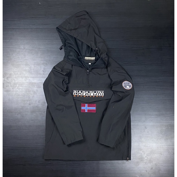 [siap kirim ] jaket outdoor jaket anti air jaket pria jaket napapijri hitam full bordir tebal napaijri outdoor cagoule jaket hitam