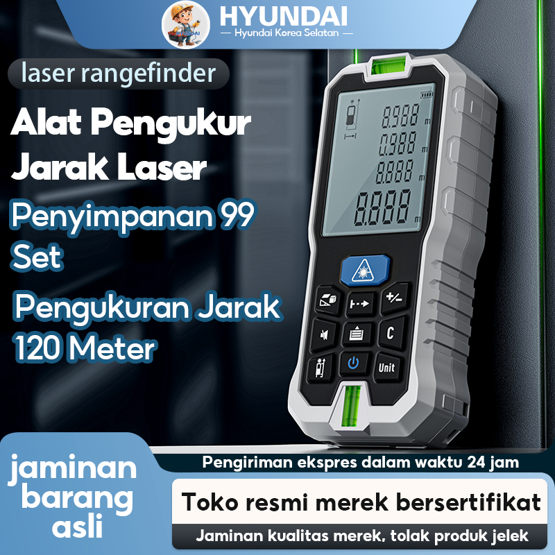 HYUNDAI Laser Rangefinder Laser Distance Meter 120 Meter Measurer Dimensi Meteran Ukur Jarak Tester