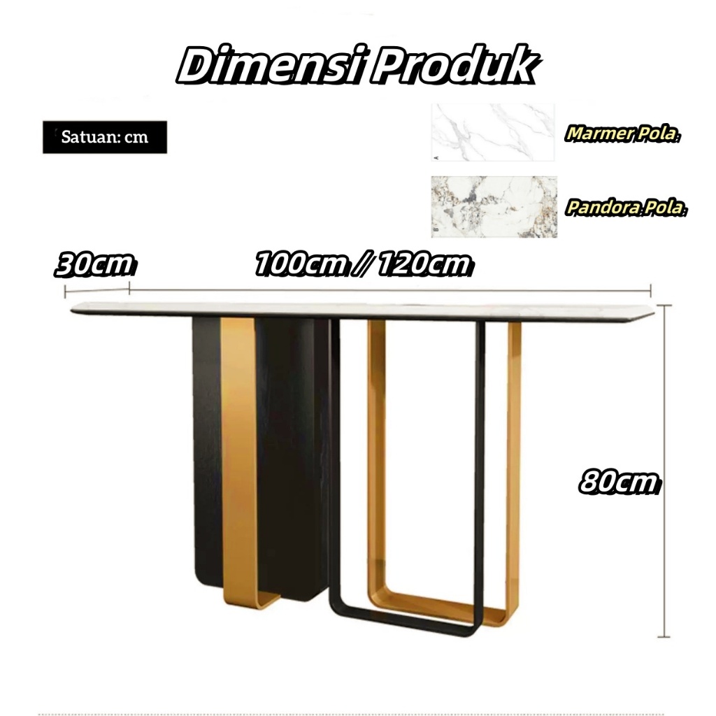 Meja Console Top Marmer | 100cm OR 120cm Meja Konsol | Mewah Minimalis Meja Console Emas Aestetic| Meja Tamu Motif Besi