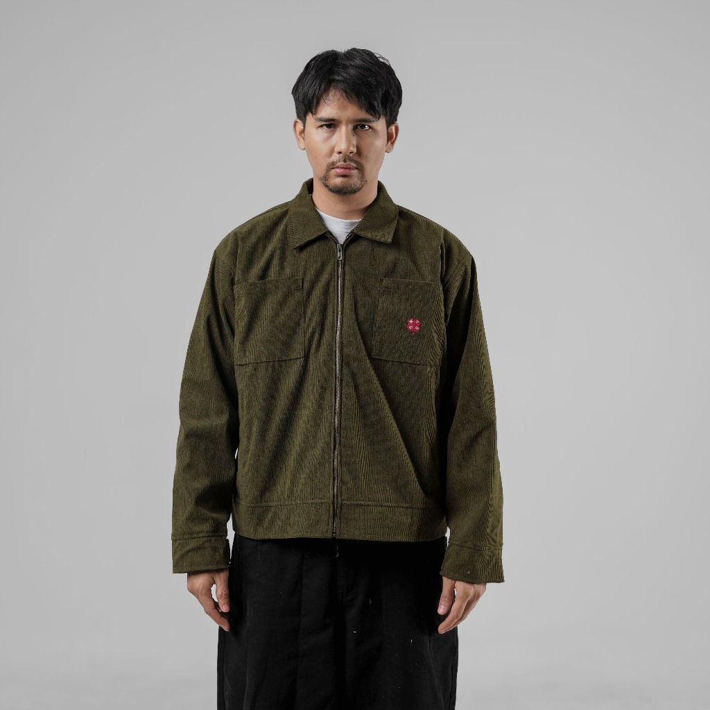 House of Smith Jaket Boxy Pria - Clover Boxy Cord Jacket Army #4 - Work Jacket