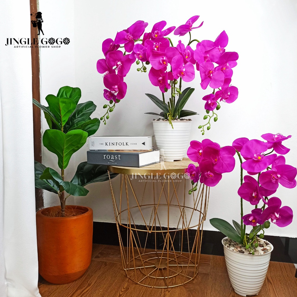 Rangkaian Anggrek Latex (Termasuk Vas ) Kado Bunga Artificial - Bunga Hias Meja - Dekorasi Rumah B8