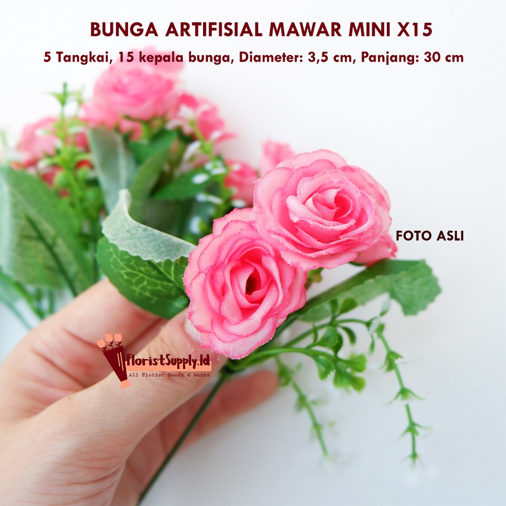 [1 Tangkai 15 Bunga] Artifisial Mawar Mini X15