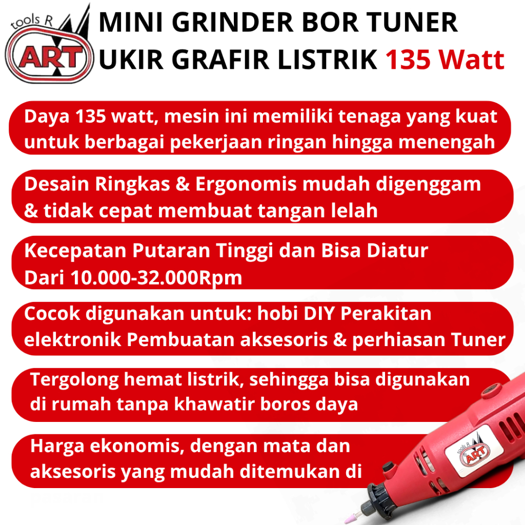 Bor Mini Gerenda Listrik Alat Ukir Kayu Grafir Amplas Poles Cutting Tuner Drill Grinder 135W 40PCS