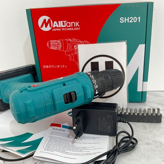 MAILTANK SH07 Mesin Bor Baterai 21V Cordless Drill 10mm Bor Baterai BONUS 2baterai Koper dan Set Mata Bor CORDLESS SH07 MAILTANK