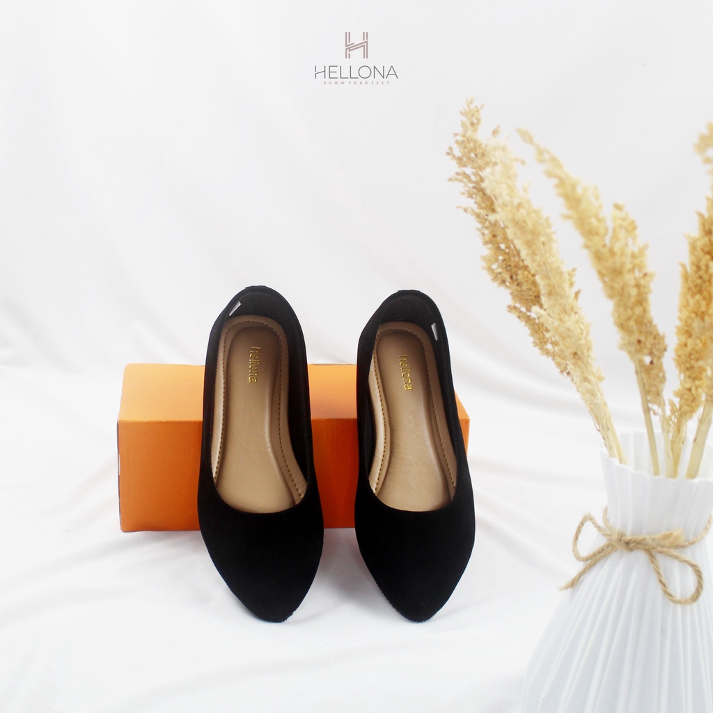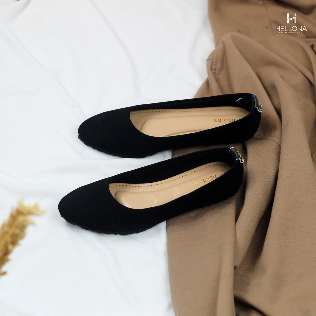 Hellona Gemini Flatshoes Empuk Sol Karet Warna Hitam Polos