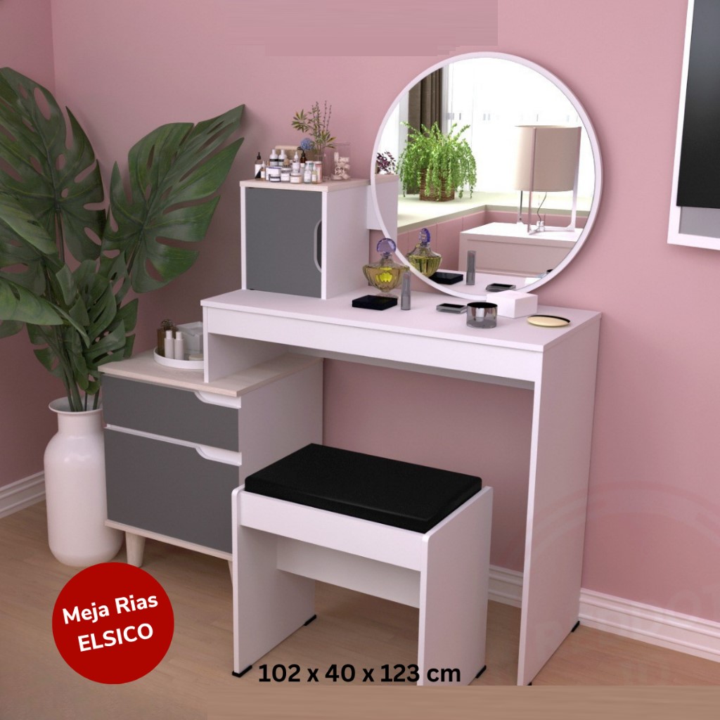 Meja Rias Kaca Sliding Putih Minimalis Plus Kursi kursi pita lampu plastik kayu jati led makeup bestseller