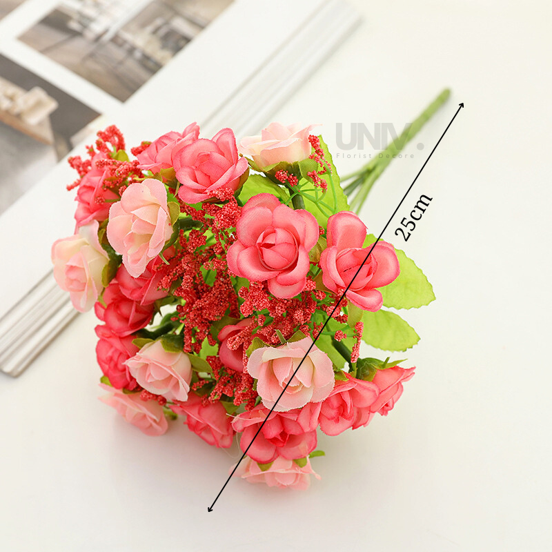 BUNGA ROSE MINI PLASTIK ARTIFICIAL 7 CABANG DEKORASI BUKET SESERAHAN