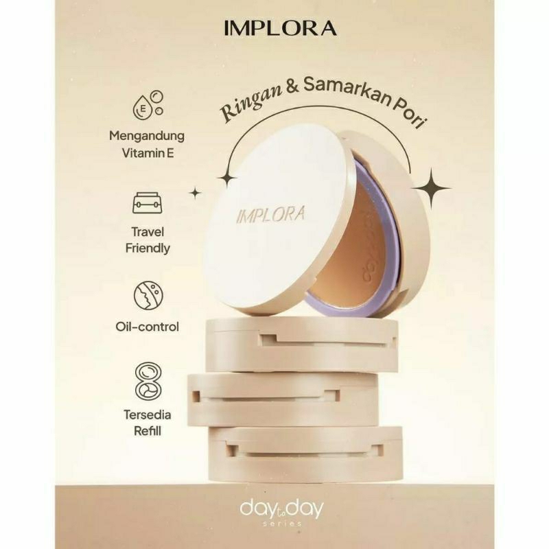 Implora Day To Day Series Two Way Cake | Bedak Implora Powder Lasting Berminyak | Bedak Padat Bisa Isi Ulang
