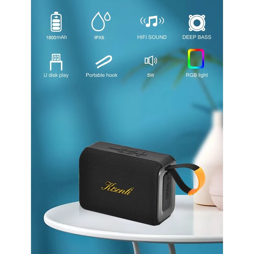 KISONLI T11 Speaker Portable Wireless IPX6 Waterproof Hifi Sound RGB Deep Bass
