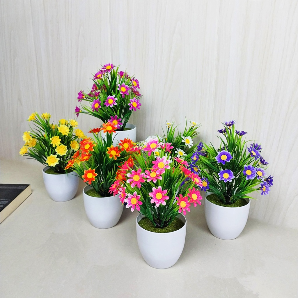 Bunga Hias Dekorasi Akasia Mawar Daisy Mix Artificial Flower Pajangan Hiasan Plastik PBP-PUTIH