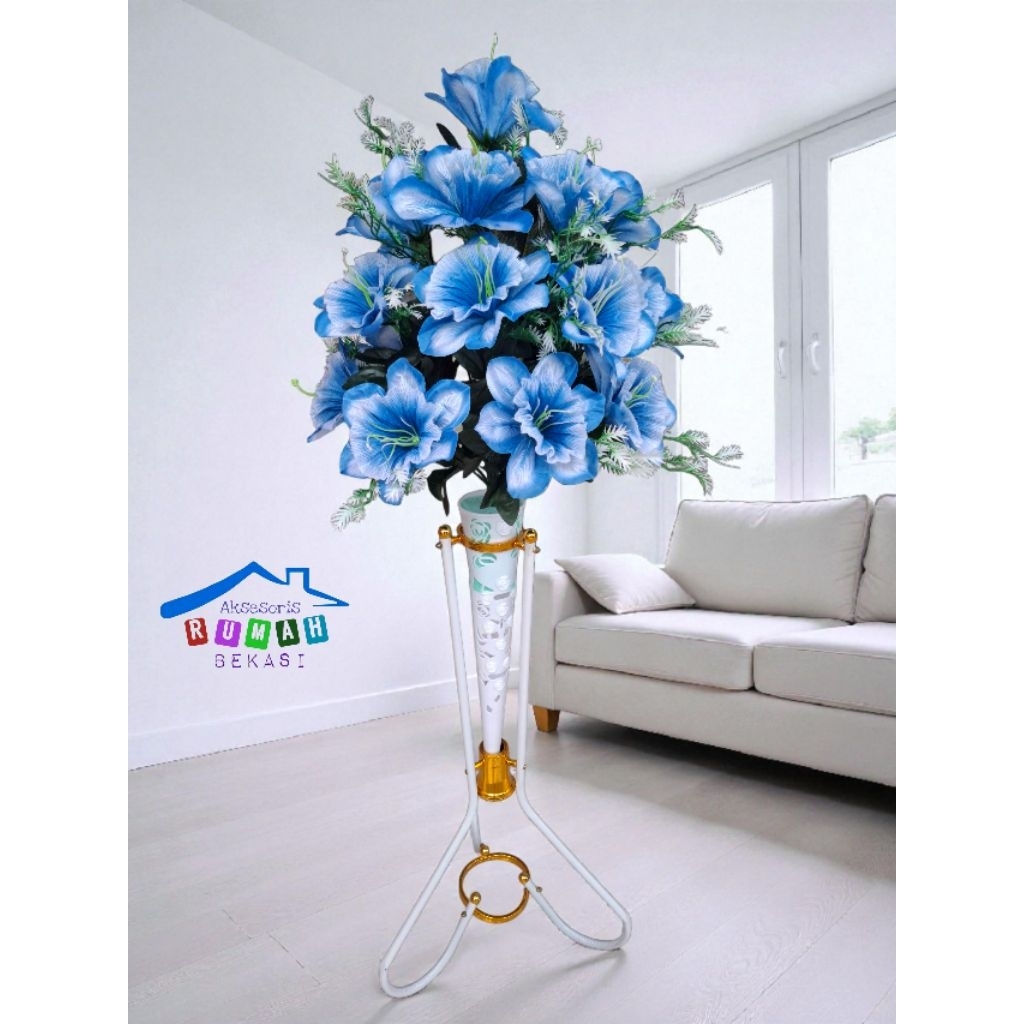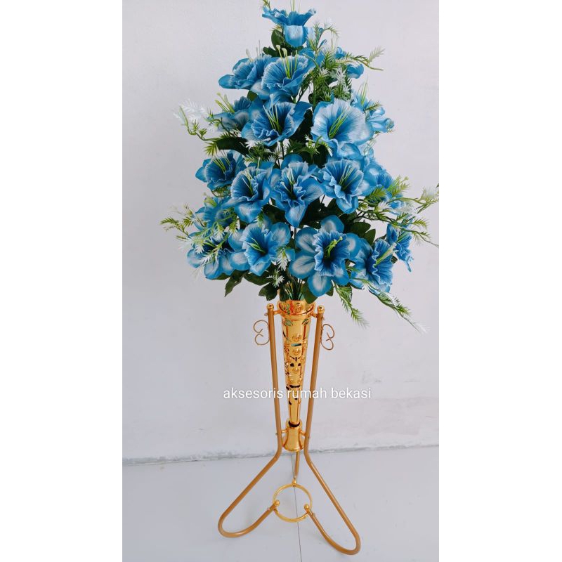 Bunga Gloria / bunga kembang sepatu / morning glory artificial 18 kuntum dengan pot standing besi