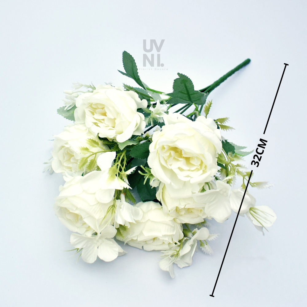 BUKET BUNGA ROSE PEONY SAKURA 32CM 7 CABANG BUNGA DEKORASI RUMAH KANTOR PESTA PERNIKAHAN MD73260