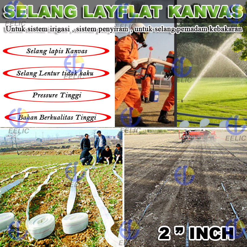 EELIC SEA-RJ2INCH 50meter Selang Air Layflat Kanvas Fire Hose Untuk Pemadam Kebakaran Dan Sistem Irigasi 2 inch