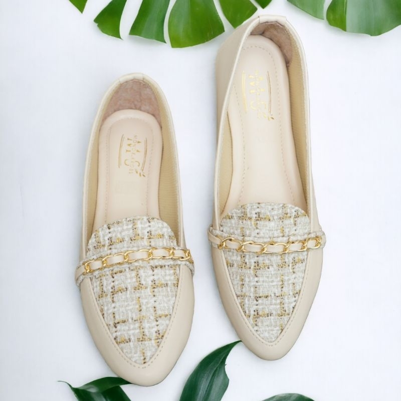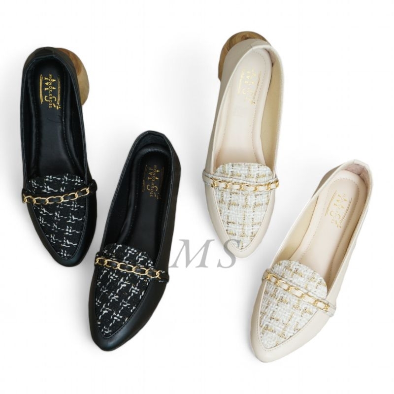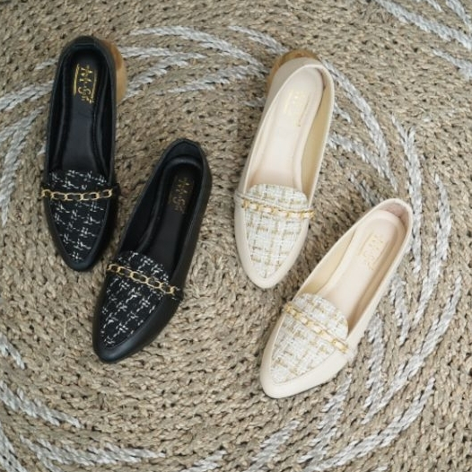 MS Enzi Flatshoes Wanita Sepatu Wanita Model Tweed Casual Sol Karet