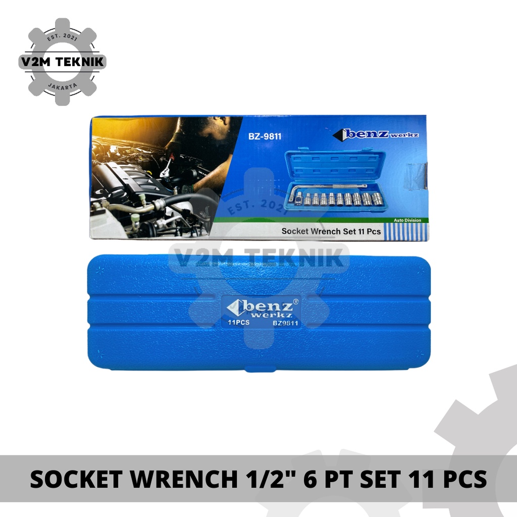 BENZ Socket Wrench Set 11 Pcs / Mata Sok 1/2 Inch 6 PT / Kunci Sock Set Uk 8 - 10 - 12 - 13 - 14 - 17 - 19 - 22 - 24 MM