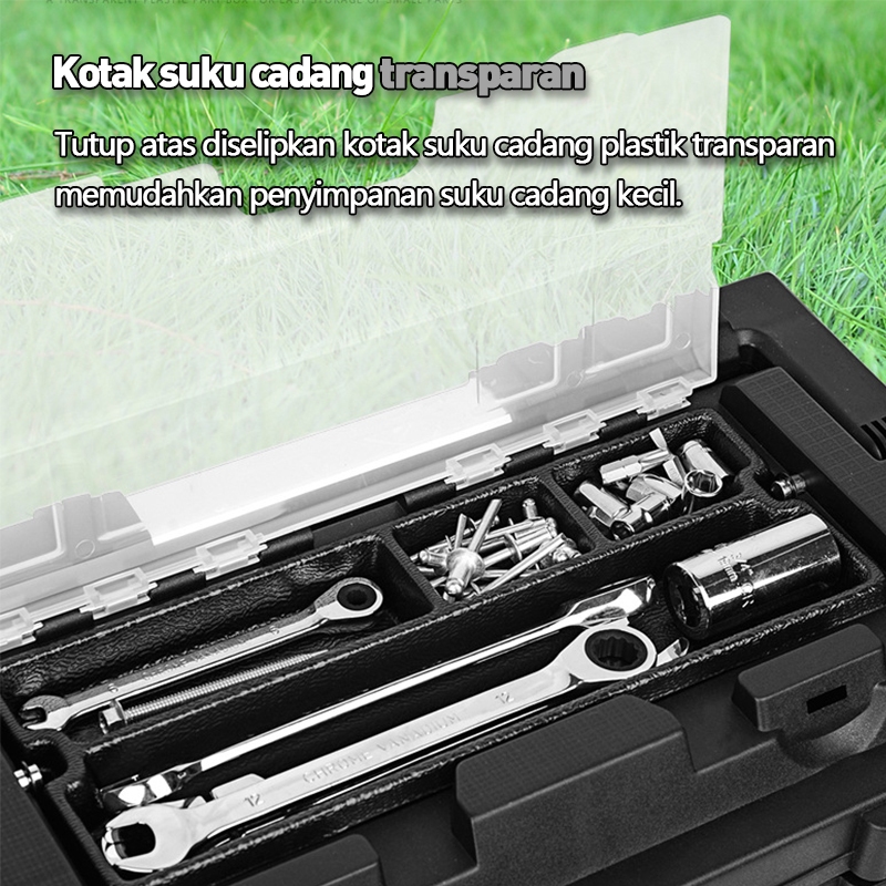 REAIM Kotak alat besar kotak alat dipertebal, ukuran 17/19/20/21 inci, bahan PP+stainless steel, kotak alat, kotak penyimpanan alat/kotak alat.