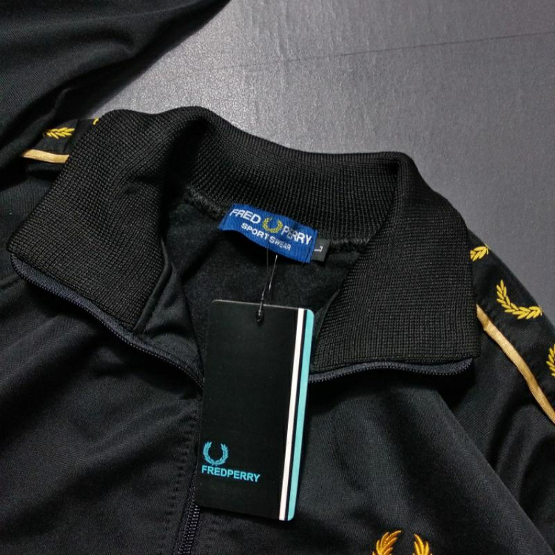 Jaket Tracktop Fred Pery Hitam Bahan Lotto Diadora