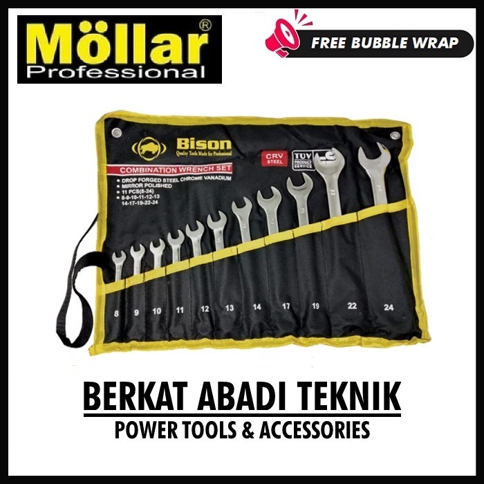 Bison Kunci Ring Pas Set 11 PCS 8-24 mm 8 PCS Combination Spanner Wrench Chrome Vanadium