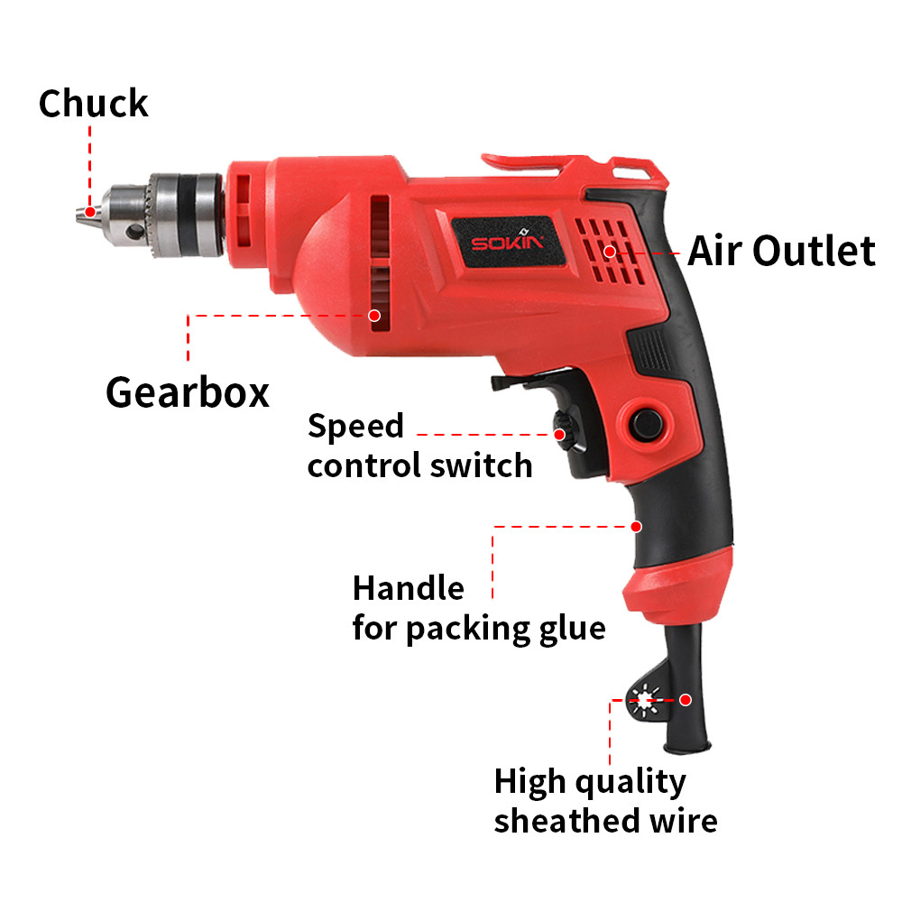 SOKIN Mesin bor listrik10-3 bor listrik Murah alat bor listrik 380W 10mm Chuck Bor tangan listrik Bor obeng Bor kayu beton tembok besi Bisa