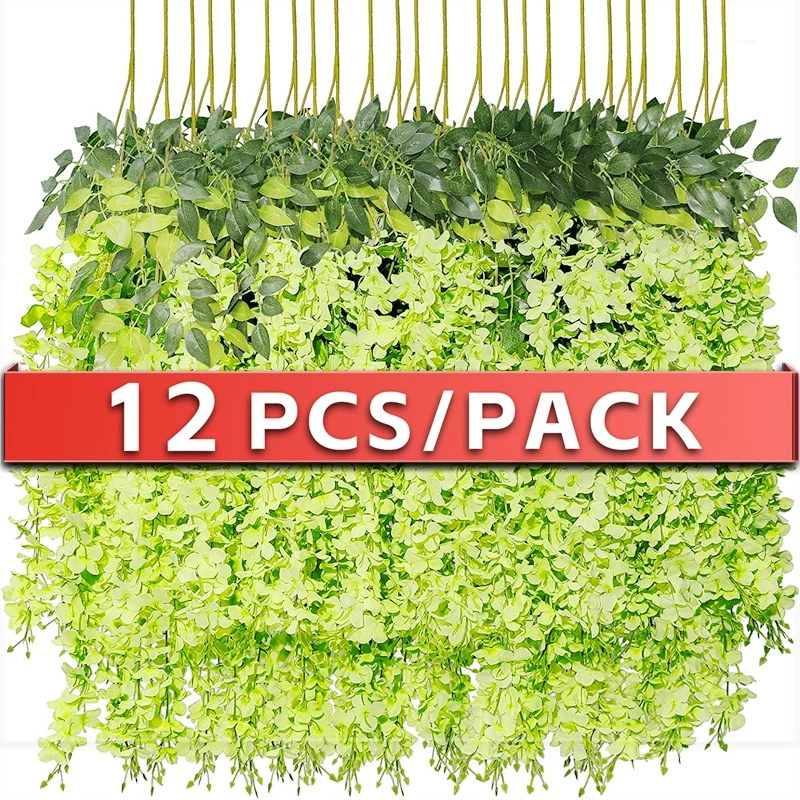 12pcs/dozen Artificial Fake Wisteria Vine Ratta Hanging Garland Silk Flowers String Home Party Weddi