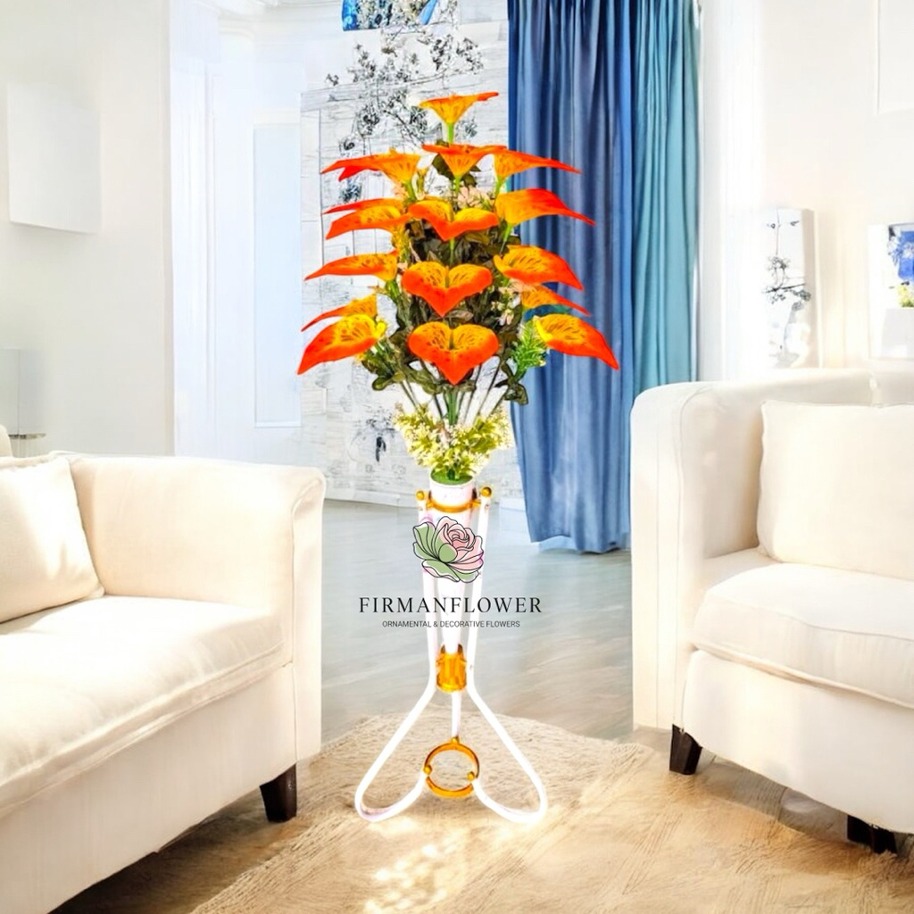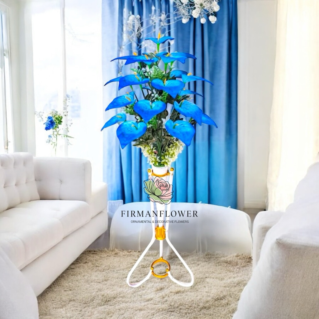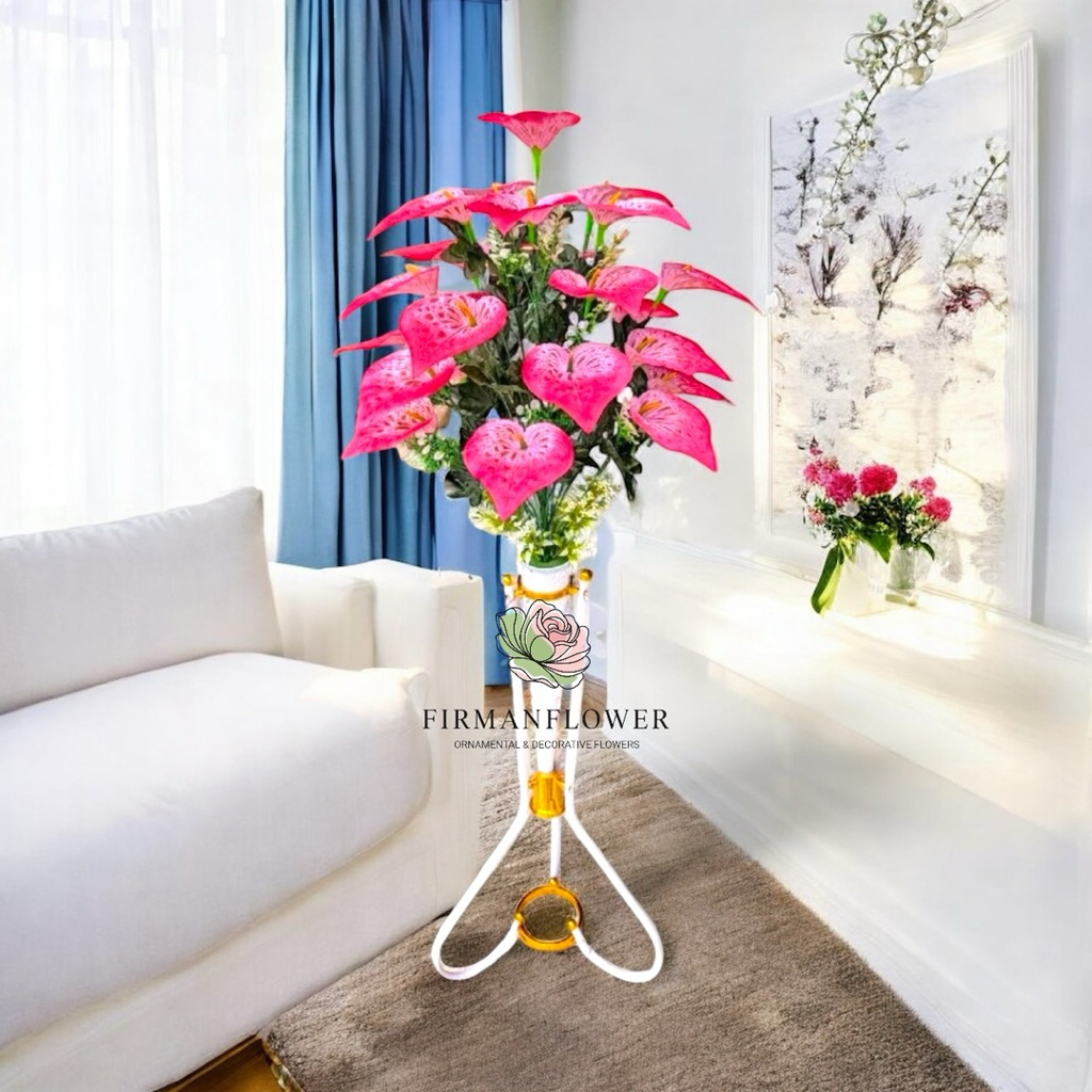 BUNGA HIAS ANTHURIUM ARON PANDA 18.KUNTUM SATU SET LENGKAP DENGAN VAS/POT STANDING BESI CORONG PLASTIK DEKORASI SUDUT RU