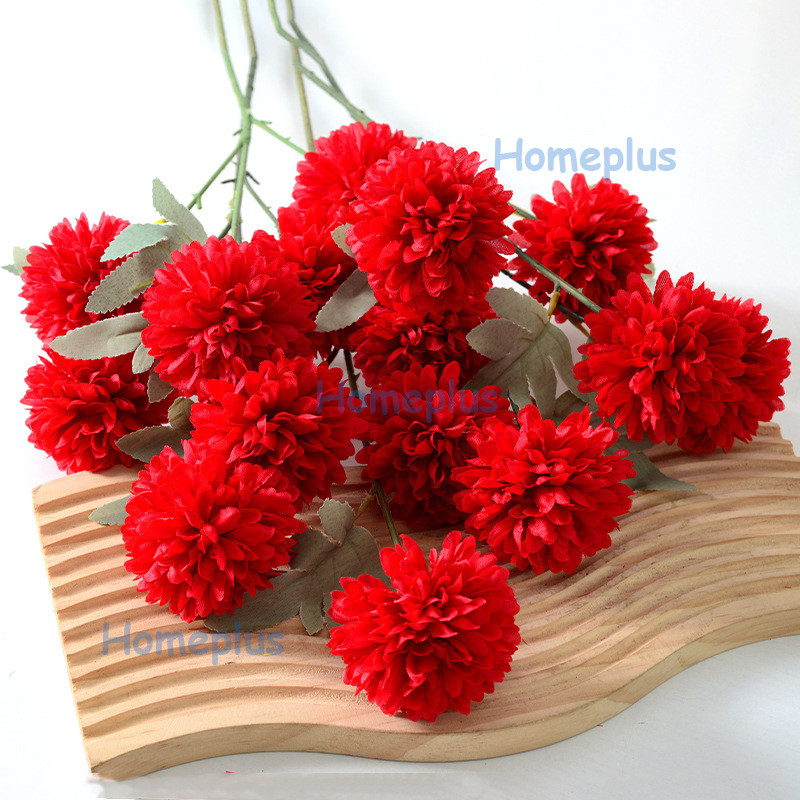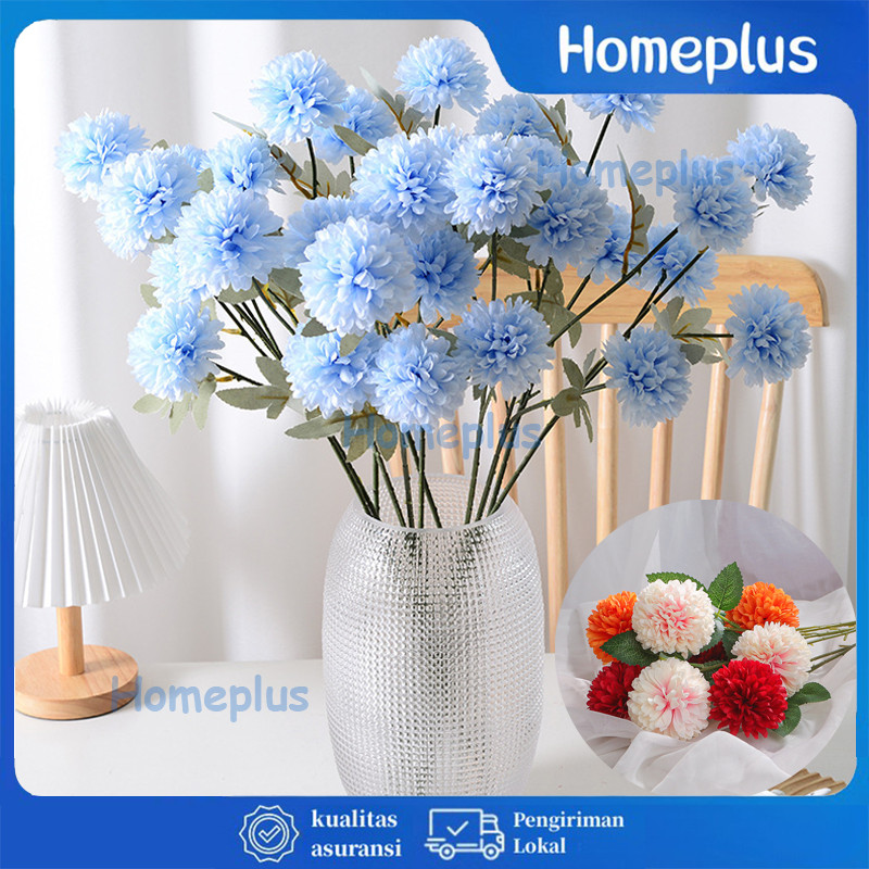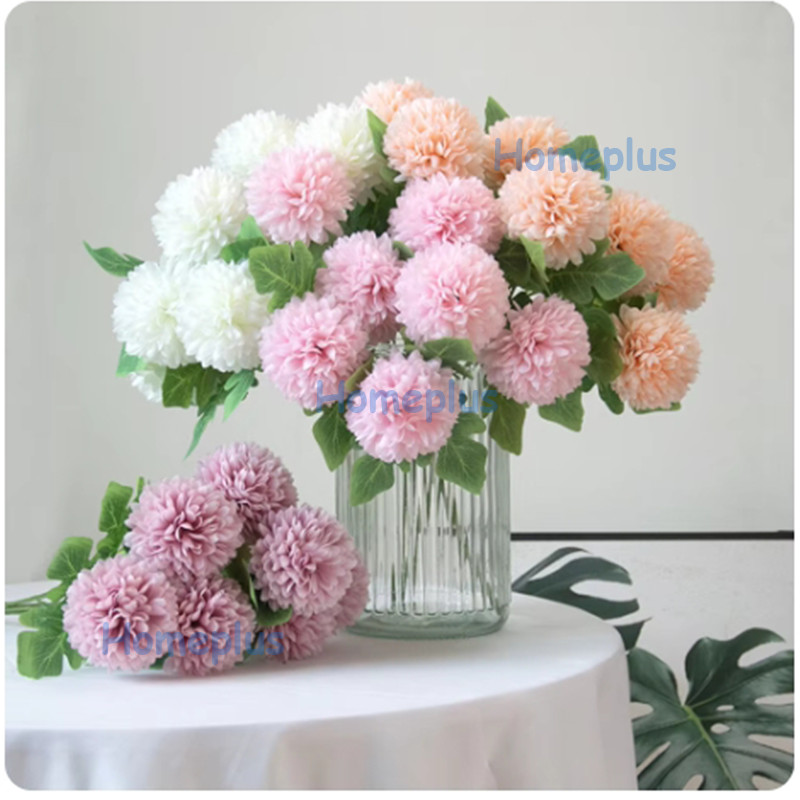 Panjang Bunga Pompom Dandelion Krisan Bulat Flower Isi 3 Kelopak Tangkai Panjang 66cm Artificial Hiasan Pesta Pernikahan