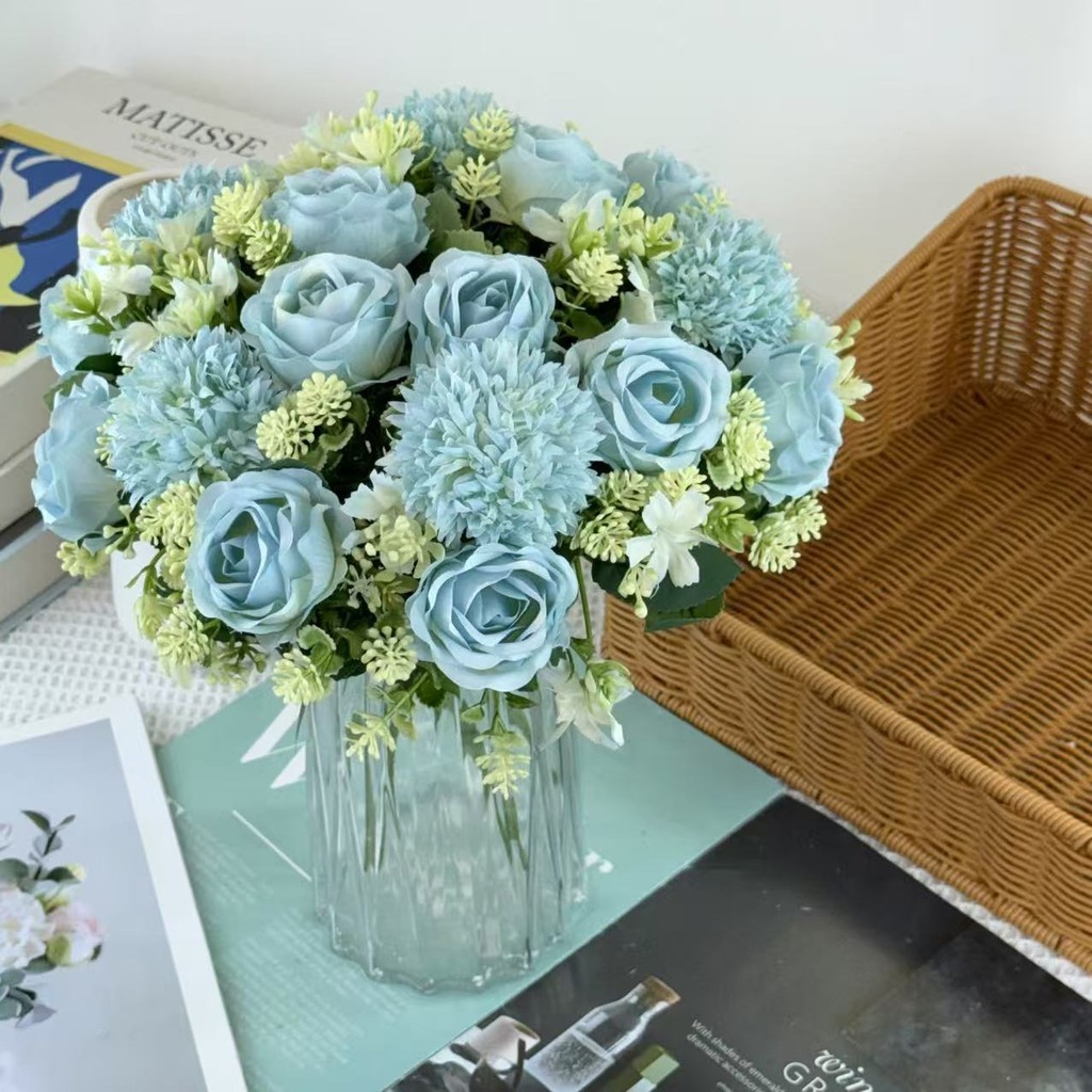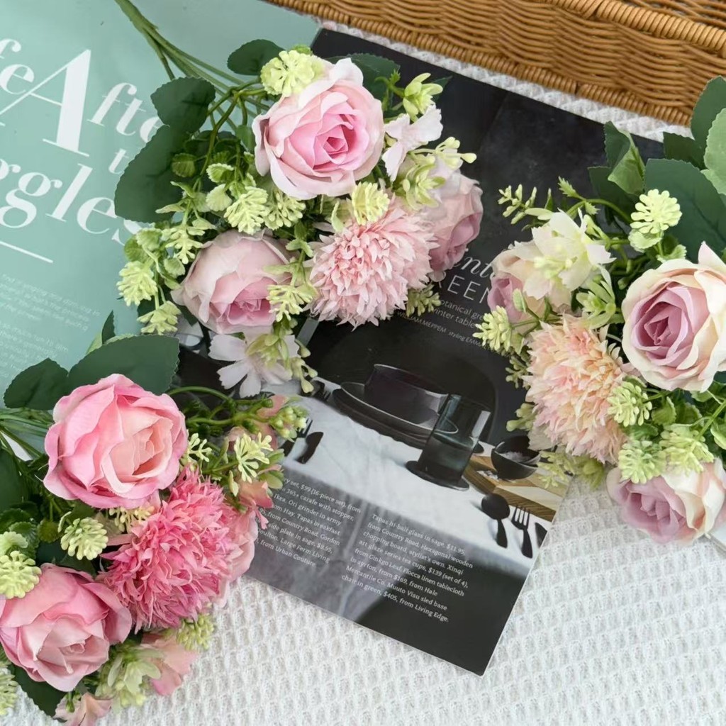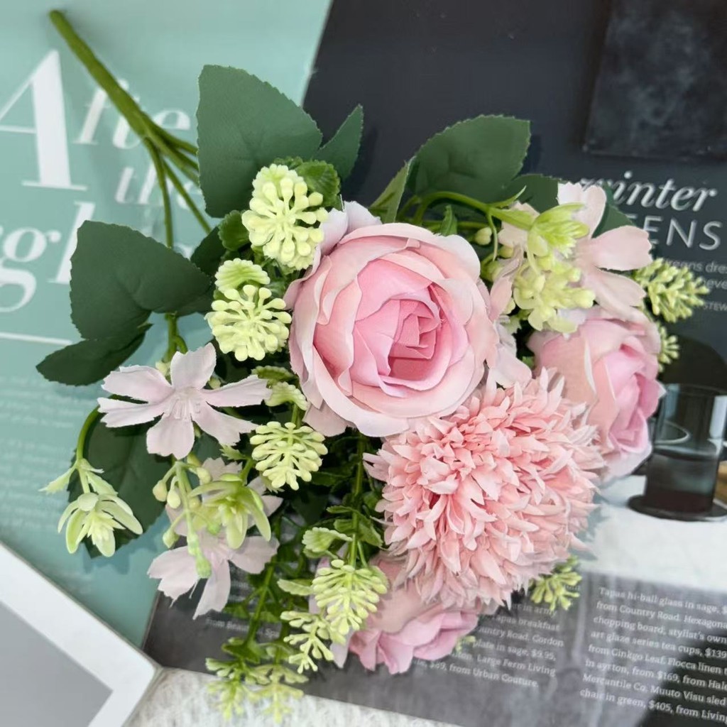 IKEBANA - Bouquet bunga BKT 1025 FEIFEI 6Cbg Bunga MIX ROSE DAN HYDRA Artifisial Dekorasi Hiasan Seserahan