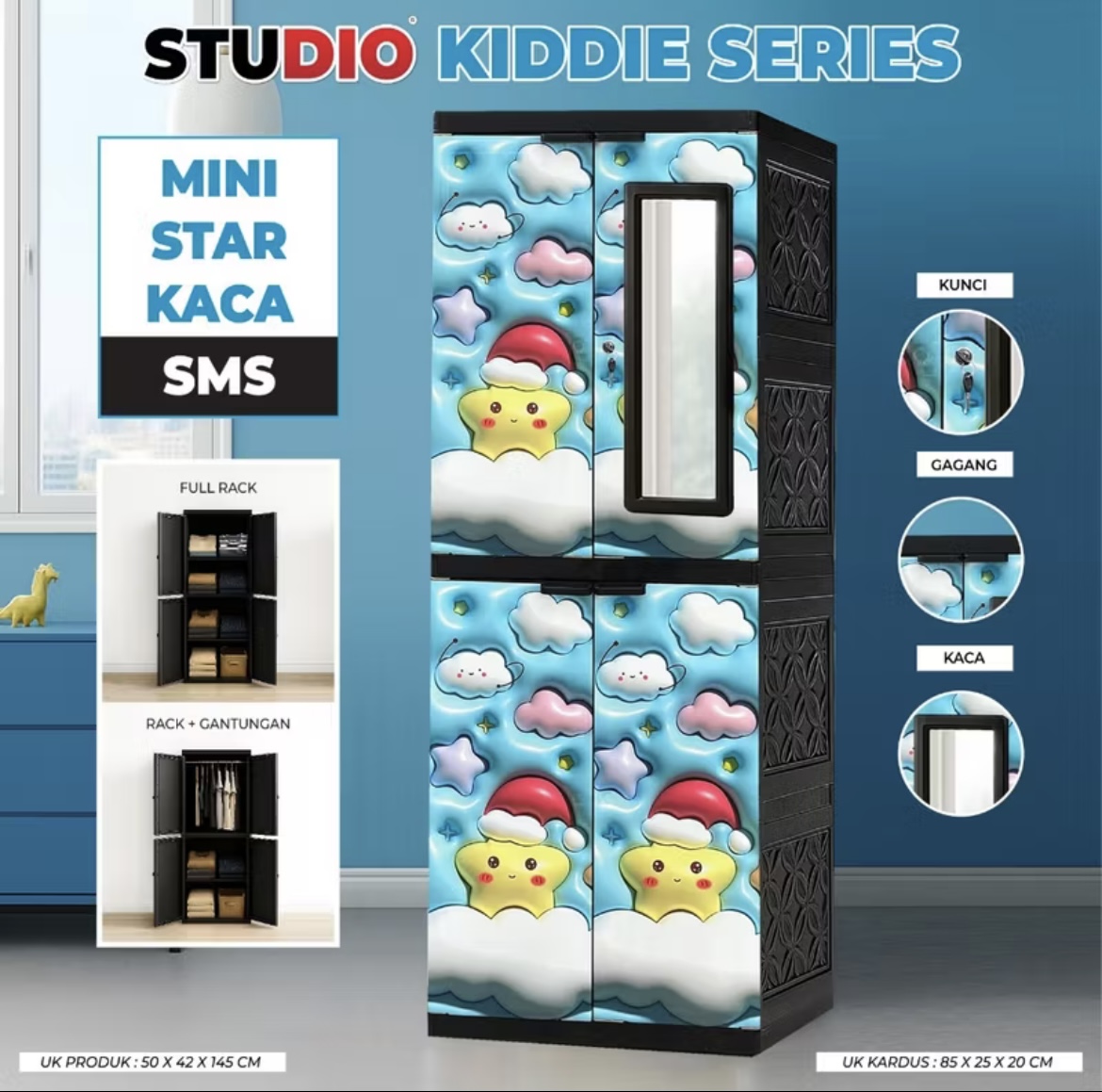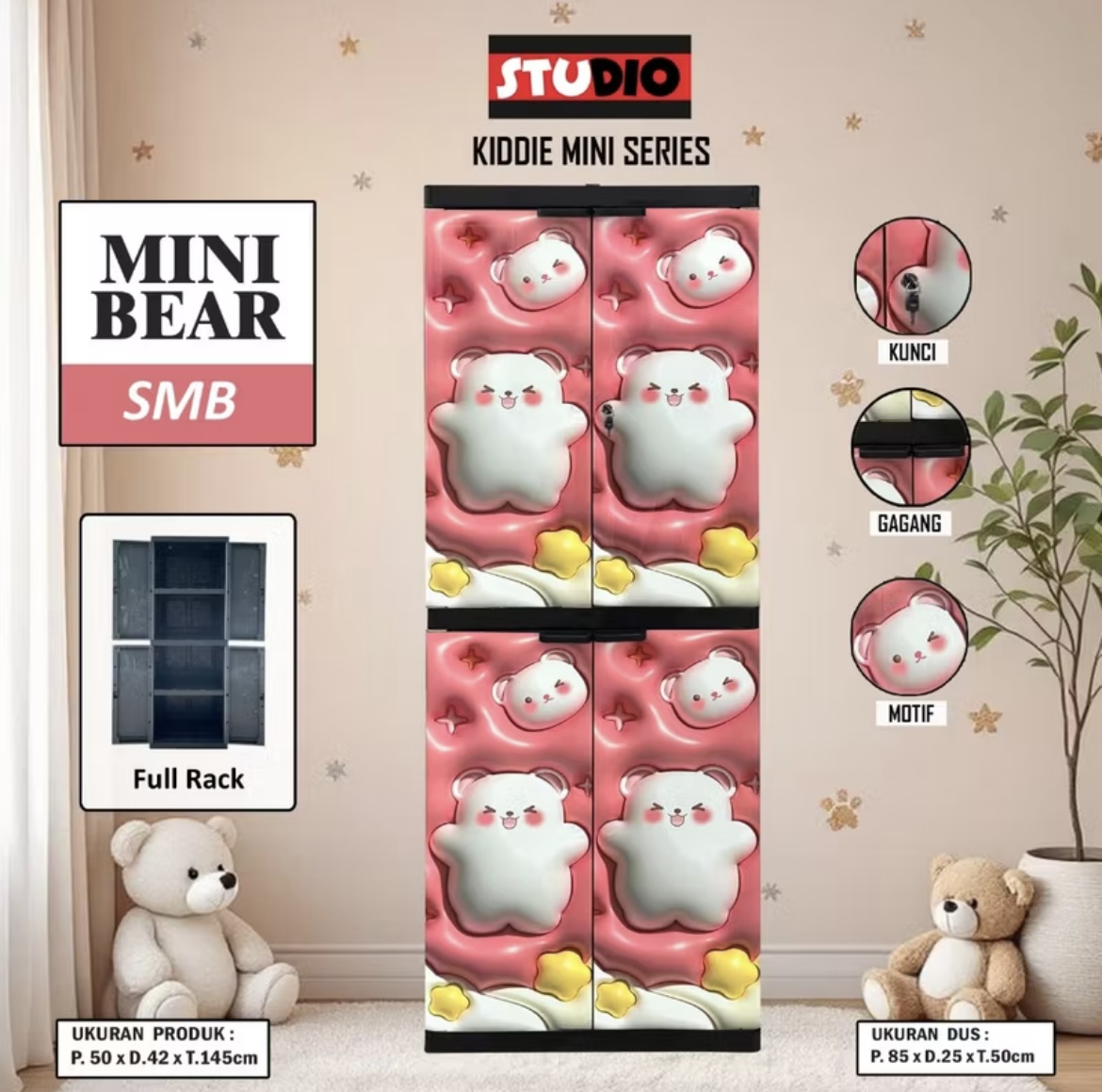 Minu Studio - Lemari Pakaian Anak Studio | Lemari Plastik 2P | Lemari Anak Karakter