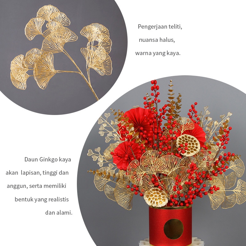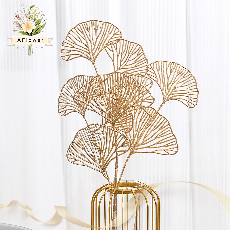 Artificial Bunga Gold Shell Leaf Ginkgo Bunga Plastik Buatan Dekorasi Hias 70cm