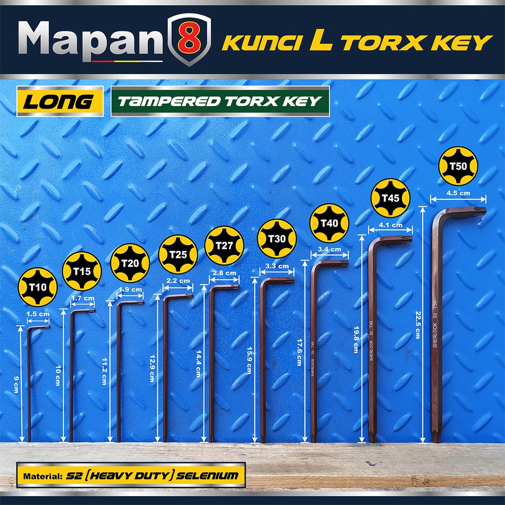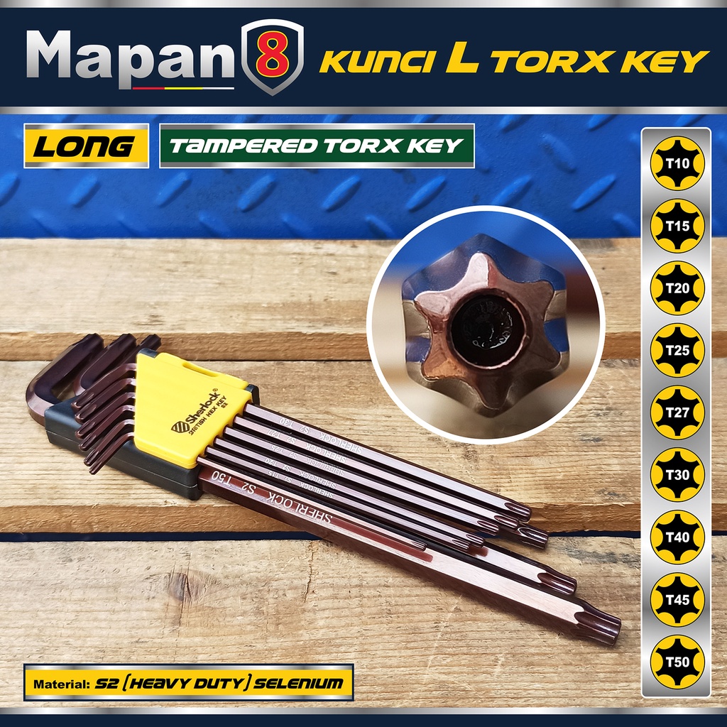 Sherlock Kunci L Bintang Set 9 Pcs (Panjang) / Kunci L Torx Key Tamper