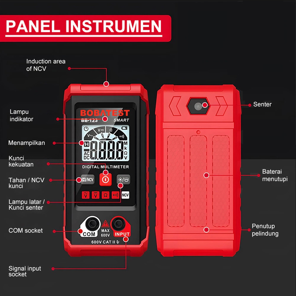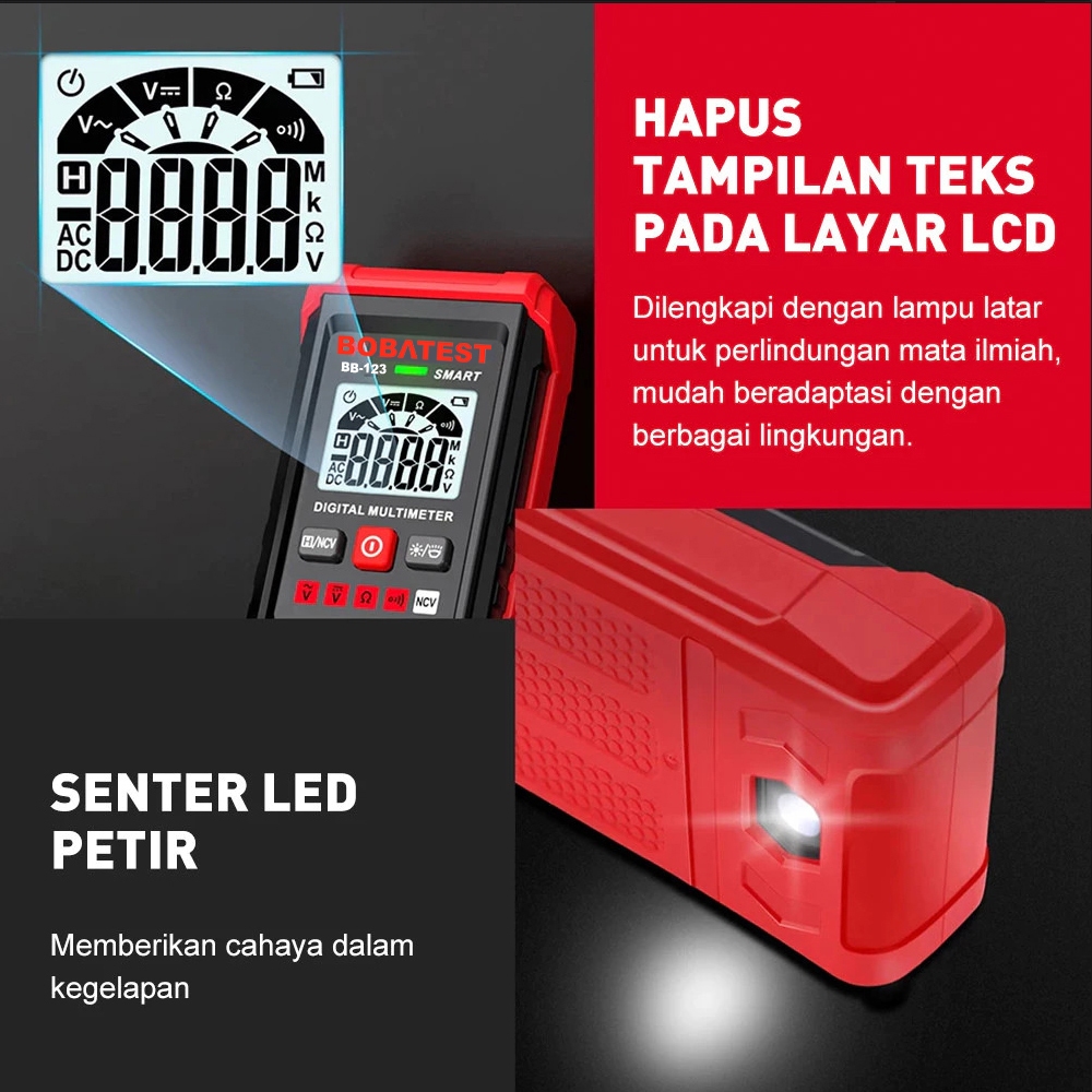 Multimeter Digital Pengukur Tegangan Listrik 600V AC DC Smart Digital Multimeter 4000 Counts Multitester Digital Bobatest BB-123