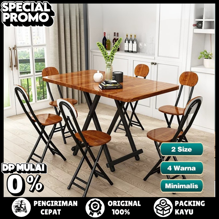 MEJA MAKAN 4 KURSI MINIMALIS MODERN SERBAGUNA MEJA DAPUR LIPAT PLASTIK KAYU MURAH TERLARIS